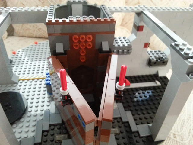 Here we can see the beginnings of the "swinging across the shaft" scene with the platforms that Luke and Leia swing across in order to escape from the pursuing stormtroopers. The stickers on the long vertical pieces are a nice touch as they do a decent job of recreating the lighting panels as seen in the movie.